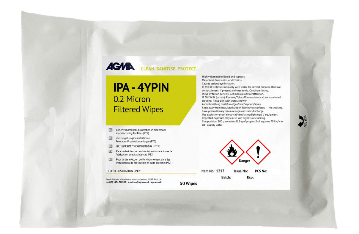 De (steriele) AGMA IPA 70/30 geïmpregneerde, 30 GSM doeken zijn ontwikkeld voor gebruik in veeleisende cleanroomomgevingen. inclusief omgevingen waar strikte microbiologische controle en ISO-classificaties vereist zijn.