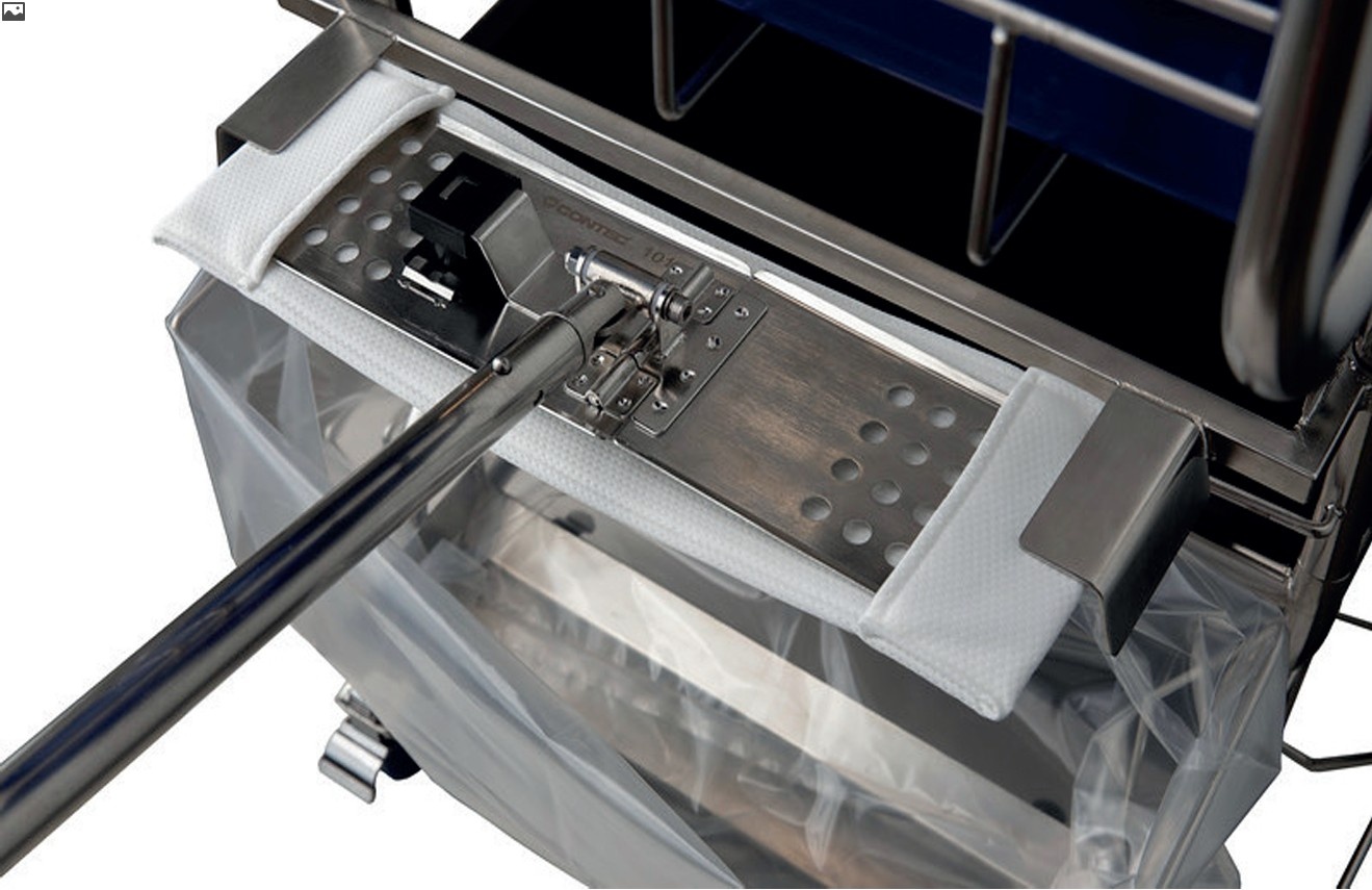 De constructie van het Contec Hands Free Mop Saturation System weerspiegelt onze toewijding aan kwaliteit en duurzaamheid. Het frame is vervaardigd uit elektrolytisch gepolijst roestvrij staal (RVS), een materiaal dat bekend staat om zijn minimale deeltjesafgifte en uitstekende corrosiebestendigheid tegen cleanroomreinigingsmiddelen.