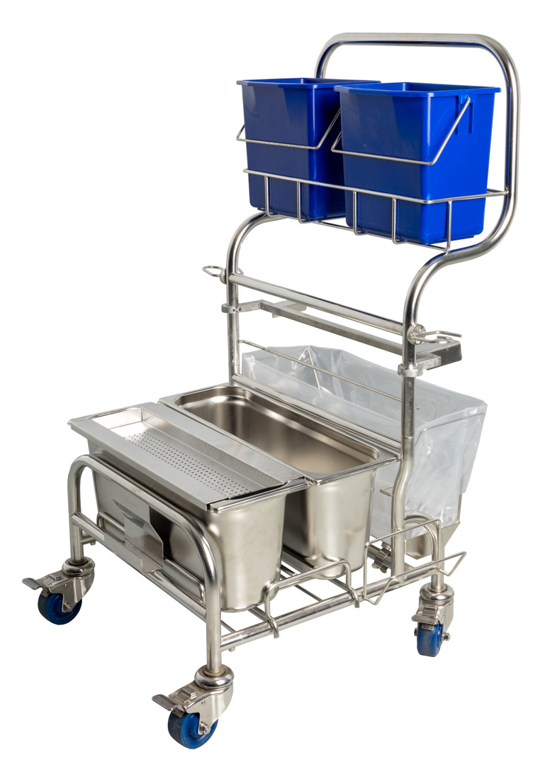 Het Contec Hands Free Mop Saturation System is meer dan een eenvoudige cleanroom trolley; het is een integraal onderdeel van uw reinigingsprotocol. Het systeem wordt geleverd op een robuuste, lichtgewicht roestvrijstalen kar, met twee 17L RVS emmers. De configuratie is ontworpen voor maximale gebruiksvriendelijkheid en minimalisering van procedures.
