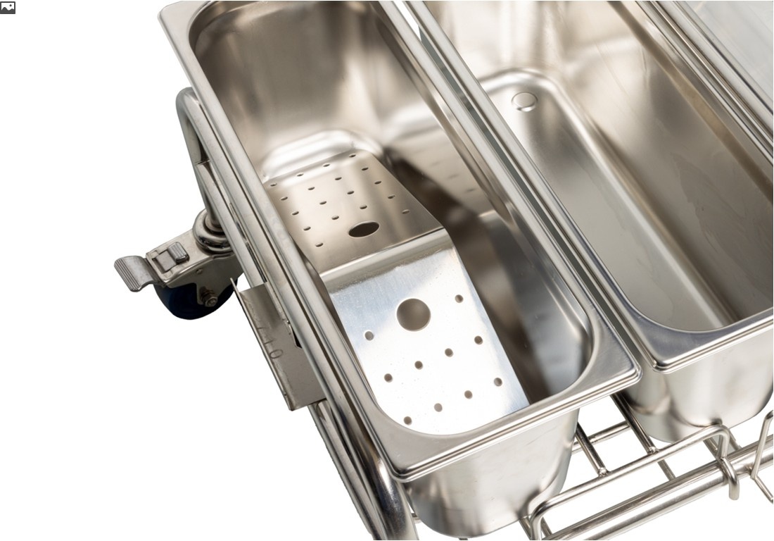 - Presaturatiecapaciteit: Elke RVS emmer is ontworpen om tot 10 platte mopkoppen vooraf te verzadigen. Een roestvrijstalen desinfectie diffuser lade bovenop de RVS emmer zorgt voor een gelijkmatige verzadiging van elke mop. Dit garandeert dat de juiste hoeveelheid reinigings- of desinfectiemiddel wordt toegepast, wat cruciaal is voor effectiviteit en compliance.