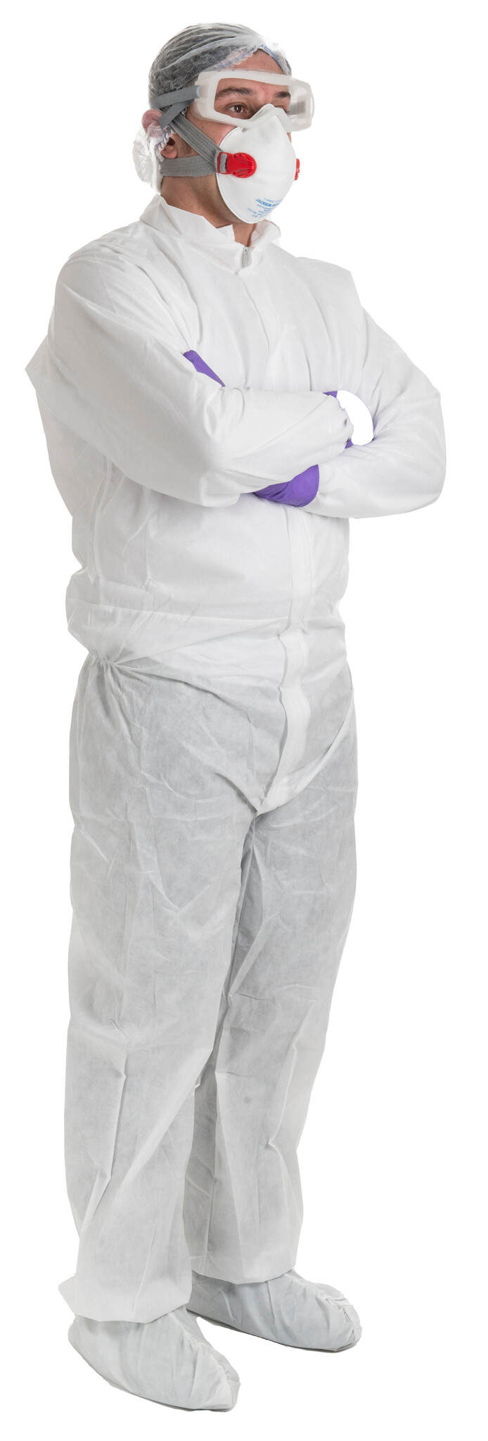 De Kimtech A8 coverall is gemaakt van SMS polypropyleen. De coverall biedt bescherming tegen vaste deeltjes (type 5) en vloeistoffen (type 6 ).
