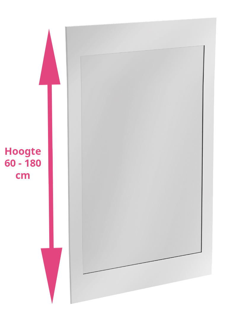 De polycarbonaat cleanroom spiegel is te bestellen in 3 lengte maten (H x B):