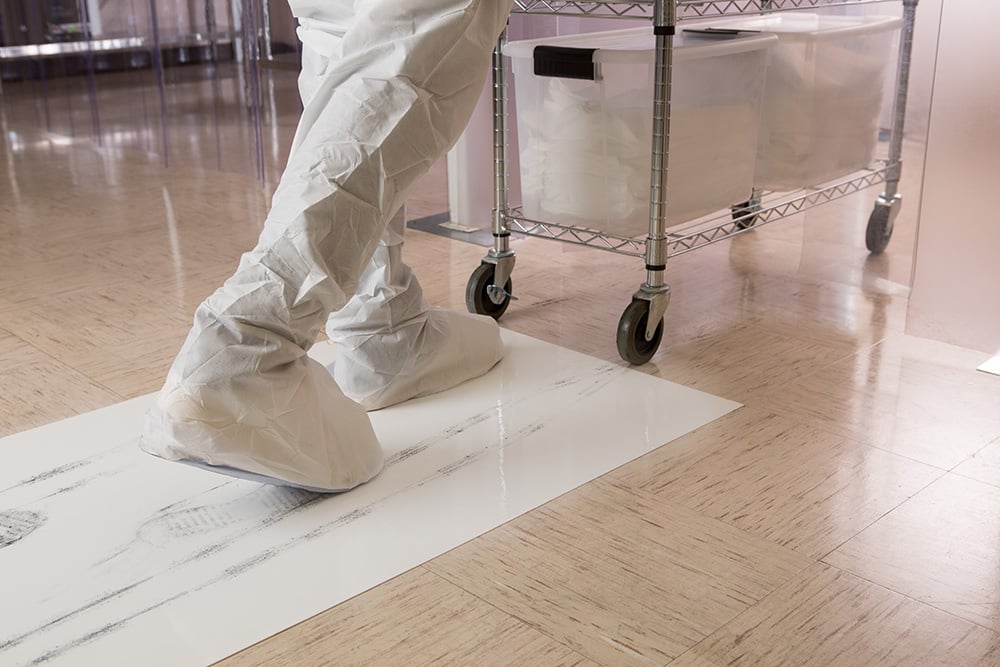 De kleefmatten zijn uitermate geschikt voor gebruik in cleanrooms, kleedruimtes, goederenruimtes en ‘grijze’ ruimtes. De kleefmat zorgt voor een mindere vervuiling tijdens binnentreden doordat stof, vuil en organismen van schoenzool of wielen blijft plakken op de mat.