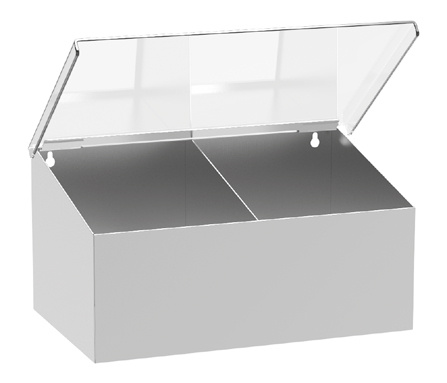 RVS dispenser voor consumables met 2 vakken voor de opslag en uitgifte van cleanroom consumables. Met transparante deksel.