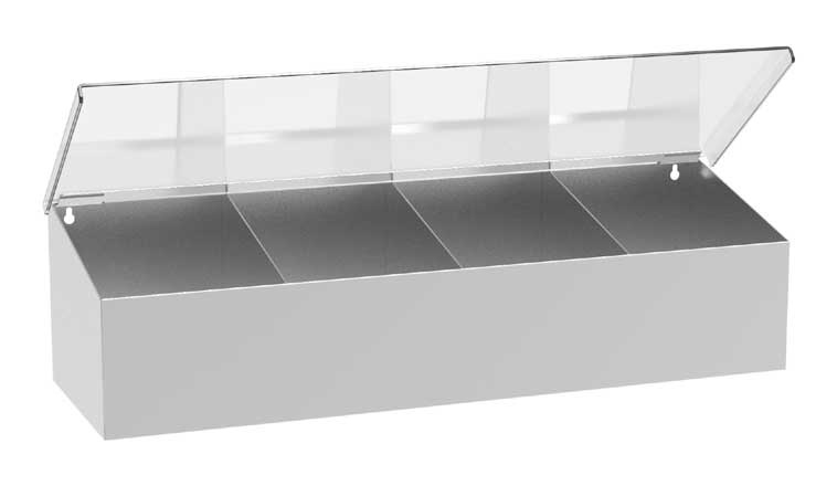 RVS dispenser voor consumables met 4 vakken voor de opslag en uitgifte van cleanroom consumables. Met transparante deksel.