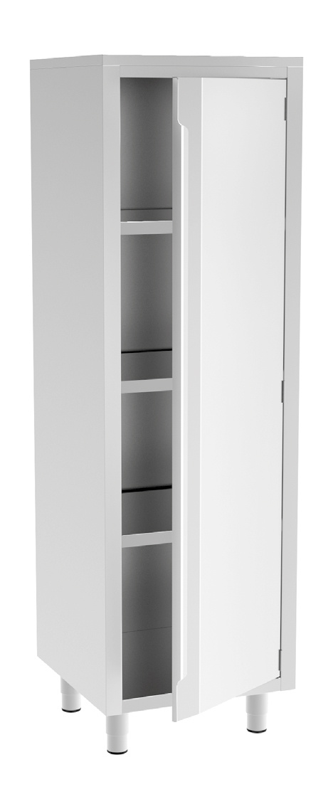 Deze hoge cleanroom kast met draaideur(en) is ontworpen voor het opbergen van diverse producten in de cleanroom. De hoge opbergkast is vervaardig uit RVS AISI 304.