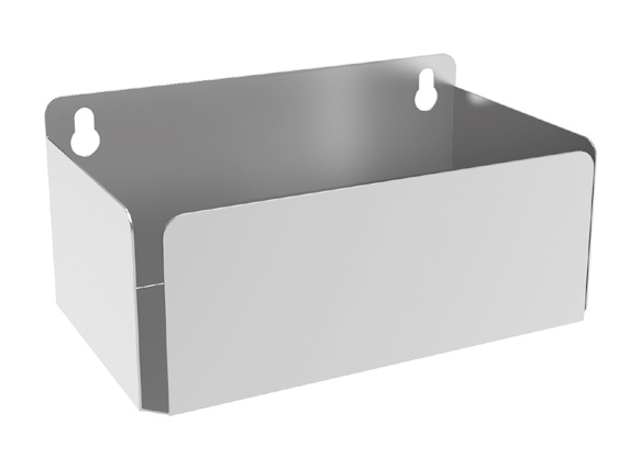 RVS horizontale wanddispenser voor consumables met 1 vak voor de opslag en uitgifte van cleanroom consumables is geschikt voor het plaatsen van de volledige verpakking, zoals bij diverse handschoenen.