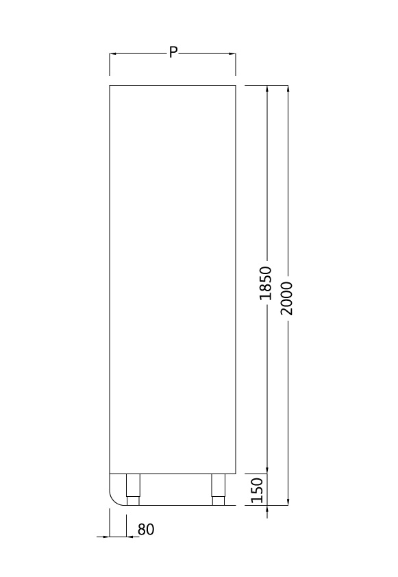 - Door de roestvrijstalen telescooppoten, waarvan de achterste vooruitgeschoven zijn, kunnen de kasten ook in ruimtes met een ronde vloer geplaatst worden. Eventueel ander maatwerk zoals binnenhoeken van 45° of afgeronde binnenhoeken R =10, op aanvraag mogelijk. Neem hiervoor contact met ons op.